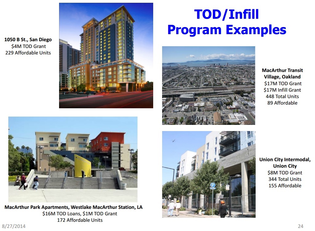 The AHSC has the goal of increasing affordable housing near transit, and with the demise of redevelopment is essentially the only state source of affordable housing funds. But housing is only one focus; the program’s goals also include increasing opportunities and infrastructure for walking and bicycling, improving transit, and ensuring that the projects it funds benefit disadvantaged communities. Because it has such a wide variety of policy objectives, it has been a complex program to set up and administer.