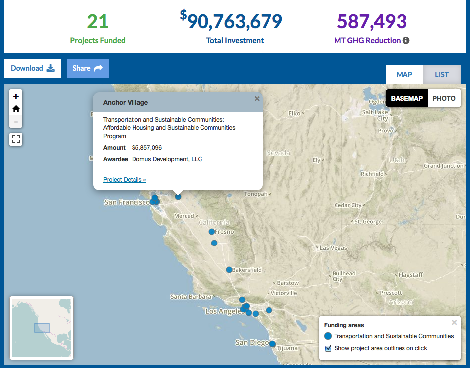 TransForm has updated and relaunched its Climate Benefits map, adding new data and a video about California’s climate investments. The map now includes a user-friendly “tour” to help people understand and search for data on where California’s cap-and-trade revenue goes.