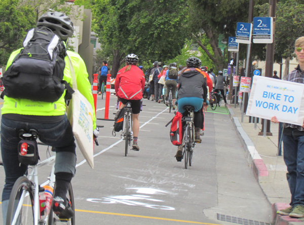 Lest anyone imagine that Bike to Work Day is just a feel-good gimmick, note that it does succeed in getting people on bikes who wouldn’t otherwise try it—thus allowing them to see for themselves how fun and efficient a bike can be. And many of them keep riding.