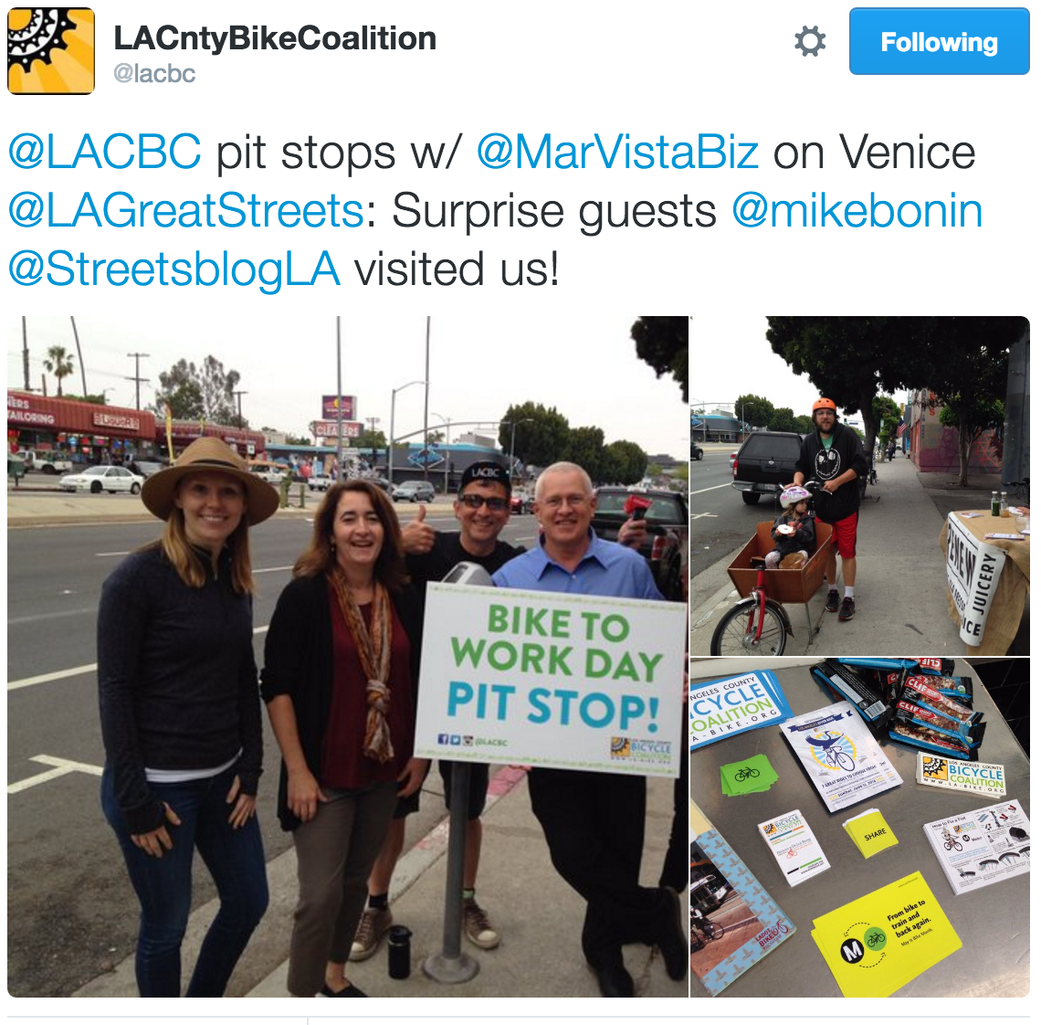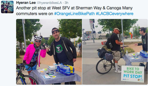 LA County also hosted Bike to Work Day Pit Stops, with refreshments and cheers for bicyclists (map here).