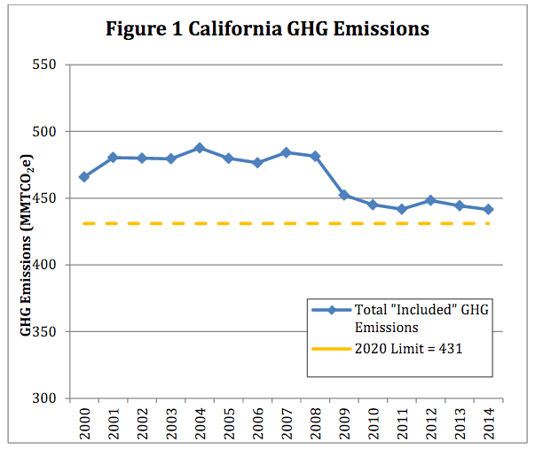 A.B. 32 also set the goal of reducing greenhouse gas emissions to 1990 levels by 2020. In April of this year Governor Brown signed an executive order that extended that goal, to a target of forty percent below 1990 levels by 2030. If the world could achieve that level of emissions, global warming would remain below the threshold of major climate disruptions, according to scientific consensus.