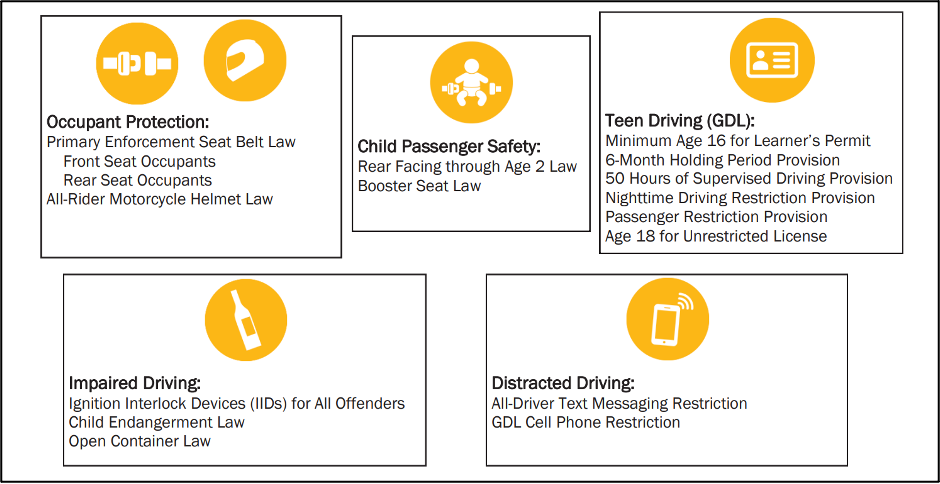 “These 16 laws do not comprise the entire list of effective public policy interventions states should take to reduce motor vehicle deaths and injuries,” the report authors wrote. “Rather, they are minimum critical traffic safety laws.”