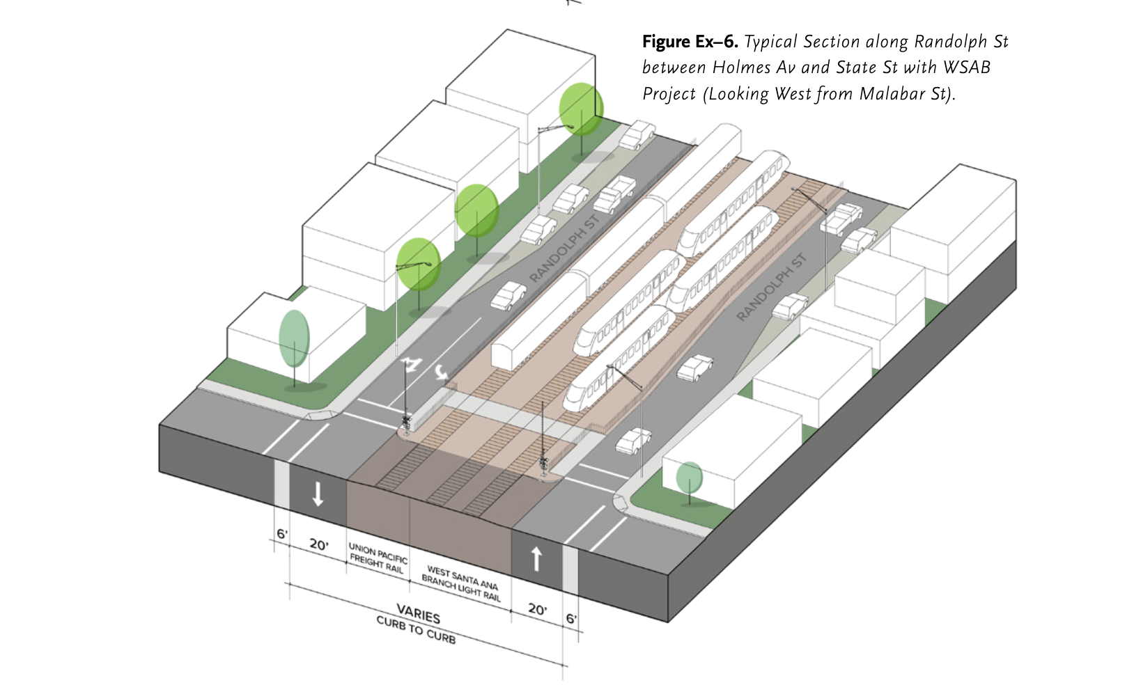 Despite the blighted condition of the corridor at present, Union Pacific has no plans to remove its tracks to make way for the WSAB. Consequently, Metro will have to build around the existing infrastructure. That means widening the Huntington Park section of the ROW to make room for two sets of light rail tracks.