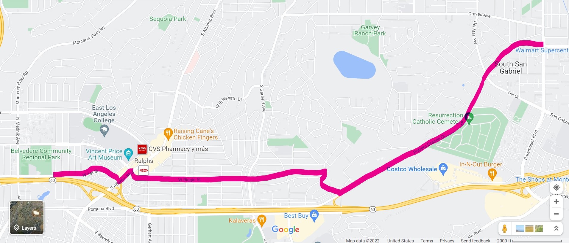 Former Monterey Park Councilmember Teresa Real-Sebastian – who is running for Council again (there is an empty seat) – said that running a bike route so close to the 60 West offramp at Atlantic and First is potentially dangerous, and suggested instead that the route’s Western terminus be at Avenida Cesar Chavez in front of East Los Angeles College, which Riggin turns into after crossing Atlantic. There are currently sharrows on Cesar Chavez in front of ELAC. (Perhaps bikes safety improvements are needed on both streets, and especially where cycling is perceived as dangerous?)