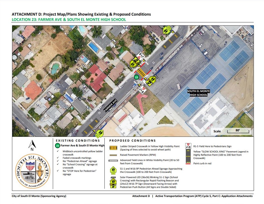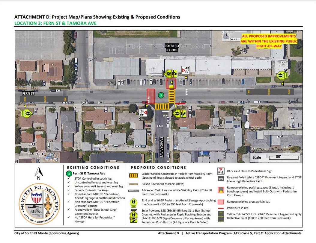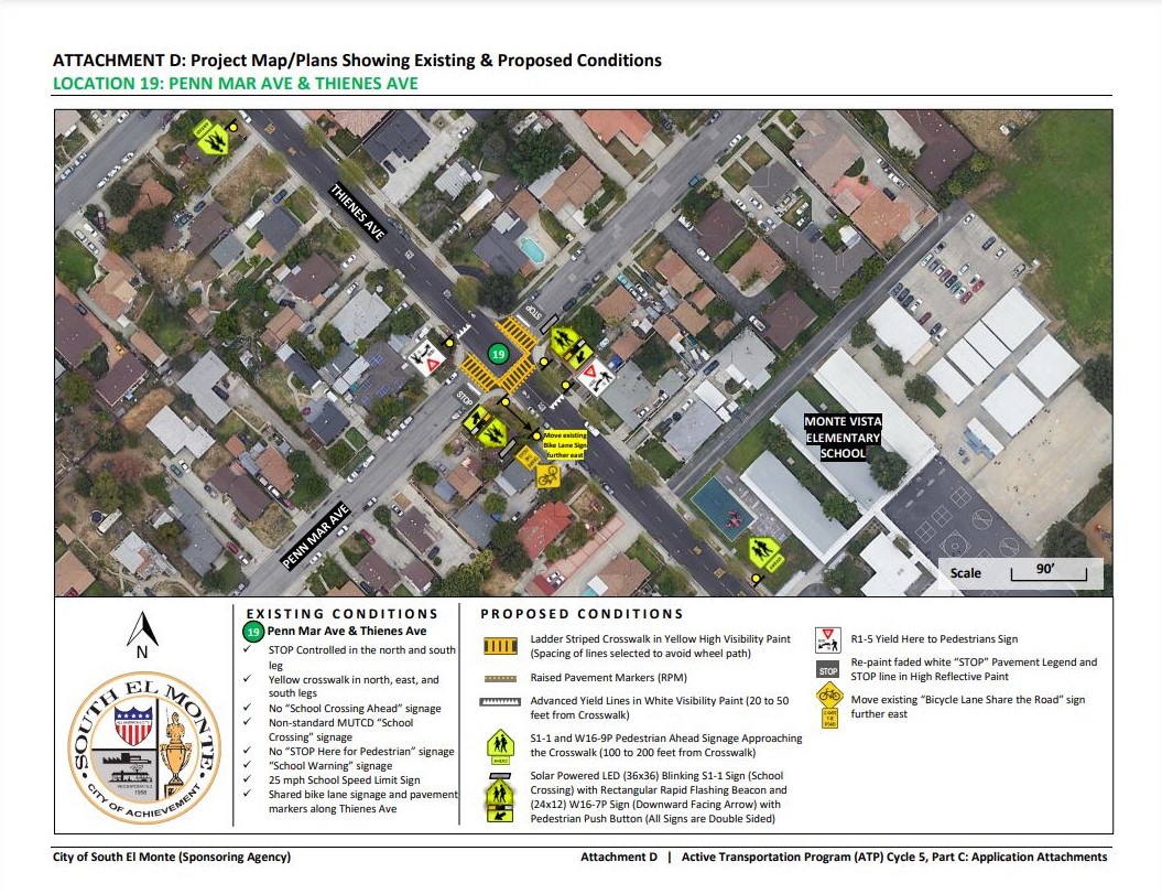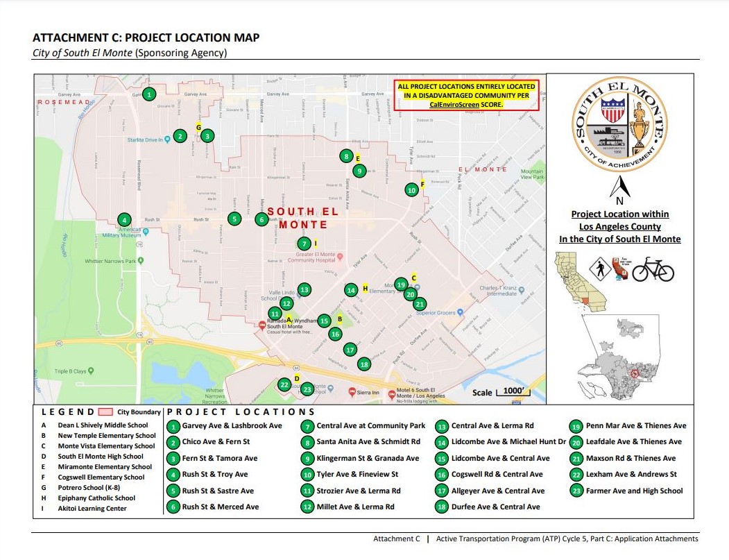 South El Monte is only 2.3 square miles large. It has some 21,000 residents, 2,400 businesses, and soon it will have 44 upgraded crosswalks near its nine school campuses. On Wednesday (February 8), the city will close its Request For Proposals (RFP) for engineering and design services for its Safe Routes To School project. This is funded with a $1,637,000 grant from the state Active Transportation Program (ATP) Cycle 5.