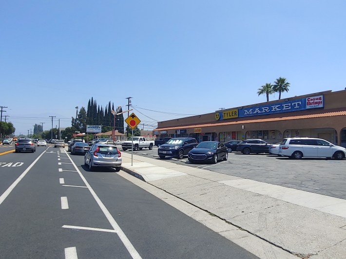 The lanes were installed on roads already heavily used as alternates to the town’s hectic arteries (Valley Boulevard and Santa Anita Avenue): Tyler as the north-south route, and Ramona, as an east-west proxy for Valley. Of course, the two meet just south of the Valley Mall, providing an opportunity for transit commuters to get off Santa Anita on their way down to Ramona.