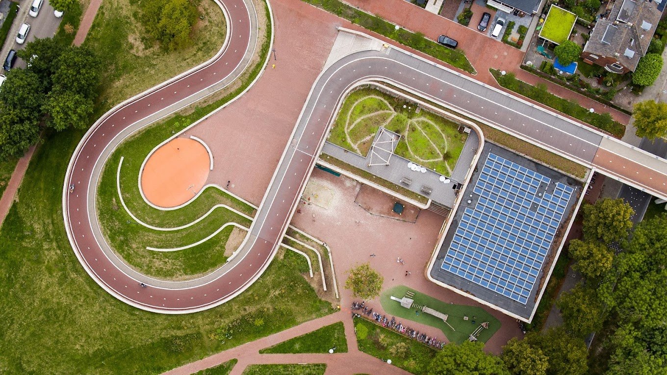 There’s a school in the Netherlands that’s much admired for having a bike path pass directly over its roof: