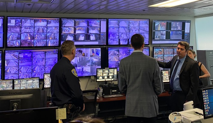 At their headquarters, BART police let the media get a look at some of the 4,000 live video feeds that come into their control rooms from cameras throughout the system. Officers who monitor the feeds told a few anecdotes about being able to quickly access images to help provide evidence in various criminal cases – for example, when a bank was robbed near a BART station. They were also able to quickly identify a suspect in a recent murder near one of their stations.