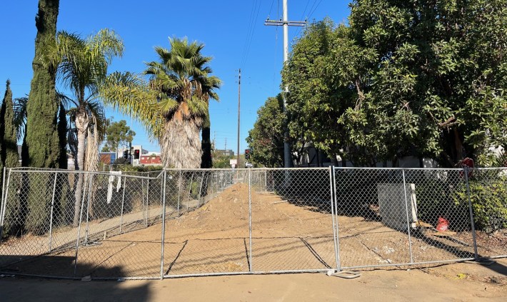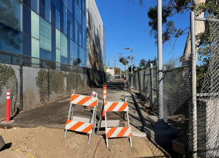 The city cobbled together the Caltrans land and the school land (much more difficult than it sounds) to obtain a dozen-foot-wide right-of-way that is now a walk/bike path under construction.