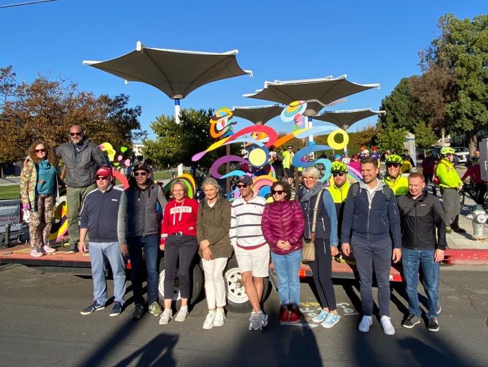 The thing is, Fresno already is all of that; most people just don’t seem to notice. This reporter took a bike on the San Joaquin train to Fresno, arriving on schedule right in downtown and a few blocks from many easily reachable and fun things – including the summit, which took place in a corner of the vast Convention Center. It was easy to reach restaurants and breweries, tour the impressive public art on Fulton Street and in the Mural District (including a sculpture by Pierre-August Renoir), ride with Fresno’s Bike Party on a warm moonlit night, take in a street fair and a well-stocked record shop in the Tower District (hosting a Taylor Swift listening party at midnight), and explore some of the future high speed rail infrastructure going in near downtown. The bike rides were short, flat, and on quiet streets, and the fall weather was marvelous. Longer bike rides beckoned – Fresno offers a lot of recreational paths and trails, with more coming – but even within its inner bounds, the city offered plenty to enjoy.