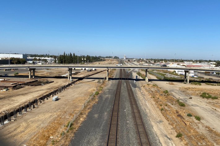 And the ongoing efforts to “revitalize” Fresno, as seen in the downtown districts, have a lot of ground yet to cover. According to Mayor Jerry Dyer, who spoke at at last week’s summit, the city of Fresno is building sidewalks, repaving, and adding street lighting and signals in the Chinatown district. This is to prepare for future development in an area that is now largely empty, save for the historic Hotel Fresno, which has been vacant for some forty years but is slated to open soon as affordable housing (although it is currently fenced off and abandoned-looking from the outside). The old train depot in Chinatown has been taken over by the California High Speed Rail Authority, which fixed it up as a headquarters but cut off public access while the streets and railroad around it are worked on.
