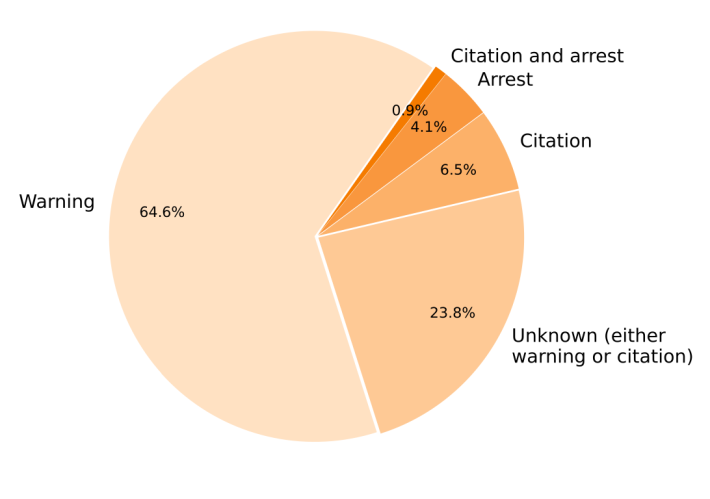 While few of the stops that the Washington researchers analyzed led to tickets and only 5 percent led to outright arrests those penalties were often borne by those who could least afford them, like the unhoused and very low-income. And while it was also rare for jaywalking stops to escalate to use of police force or a full-on pursuit — only 3 percent of the cases the researchers analyzed ended in either — Black pedestrians were far more likely to fall victim to both, receiving detentions 4.7 times and receiving tickets 2.7 times more frequently than their share of the population.