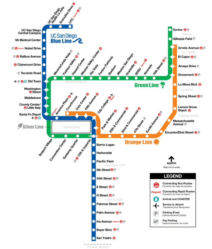 While I depended on the trolley for school, for my internship downtown, and for daily cross-border trips, infrequent service made exploring the South Bay – a region in San Diego County that encompasses Chula Vista, National City, Imperial Beach, and the southernmost neighborhoods of San Diego – difficult. The only portion of South Bay that was well-served by transit was centered along the Blue Line (a light rail route that connects the San Ysidro border port to downtown). Ridership along this corridor was always packed whenever I rode it for school, which was why I was surprised to learn during my internship that there’s a local stereotype that nobody uses the trolley. I didn’t understand this until I began to venture north of downtown.