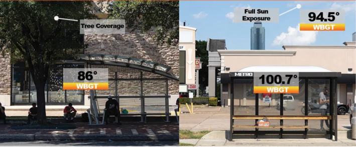 Even stops that do have coverings are often designed with rain rather than heat in mind, as investigative journalists in Houston once found when they recorded temperatures inside plastic-lined shelters that were actually higher than riders experienced in direct sunlight. Some riders compared the shelters to “hot boxes” or “easy bake ovens.”