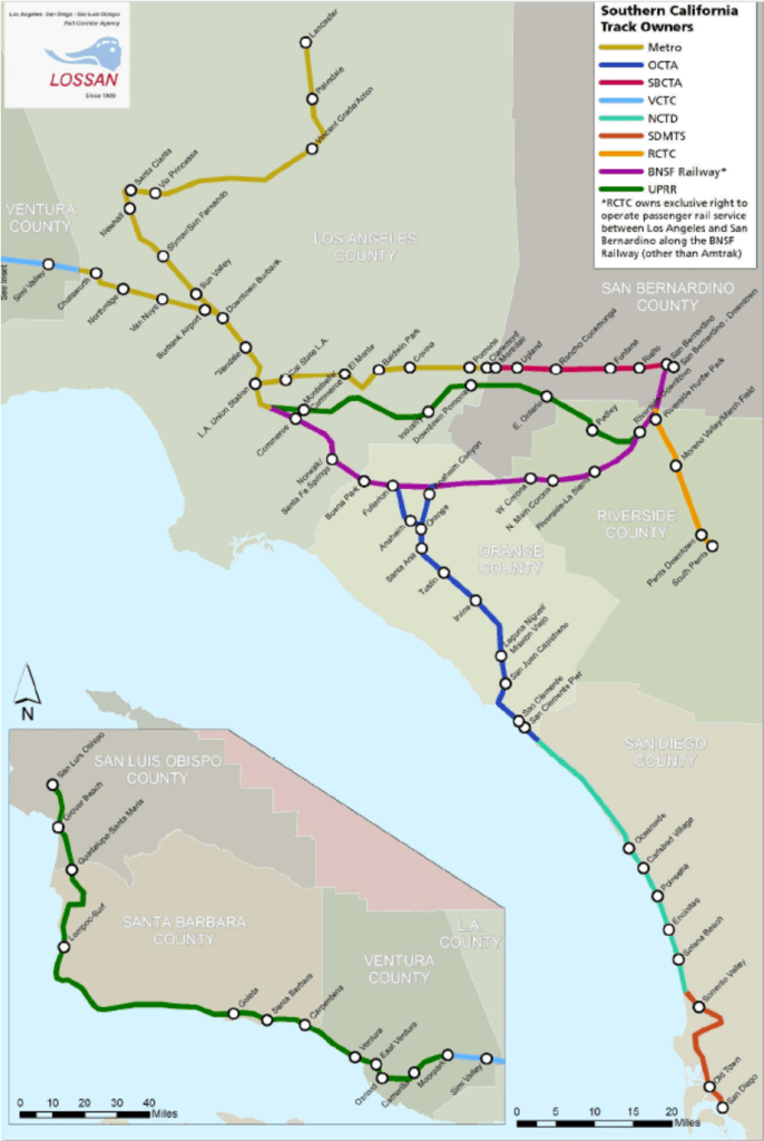 KTLA also cites Metrolink’s lack of ownership of the right of way as an issue. All of the segments we call out in our petition are publicly owned, with the exception of Union Station-Fullerton, which is owned by BNSF. However, the High-Speed Rail Authority has already reached an agreement with BNSF to allow overhead wires on that segment, making this a non-issue.