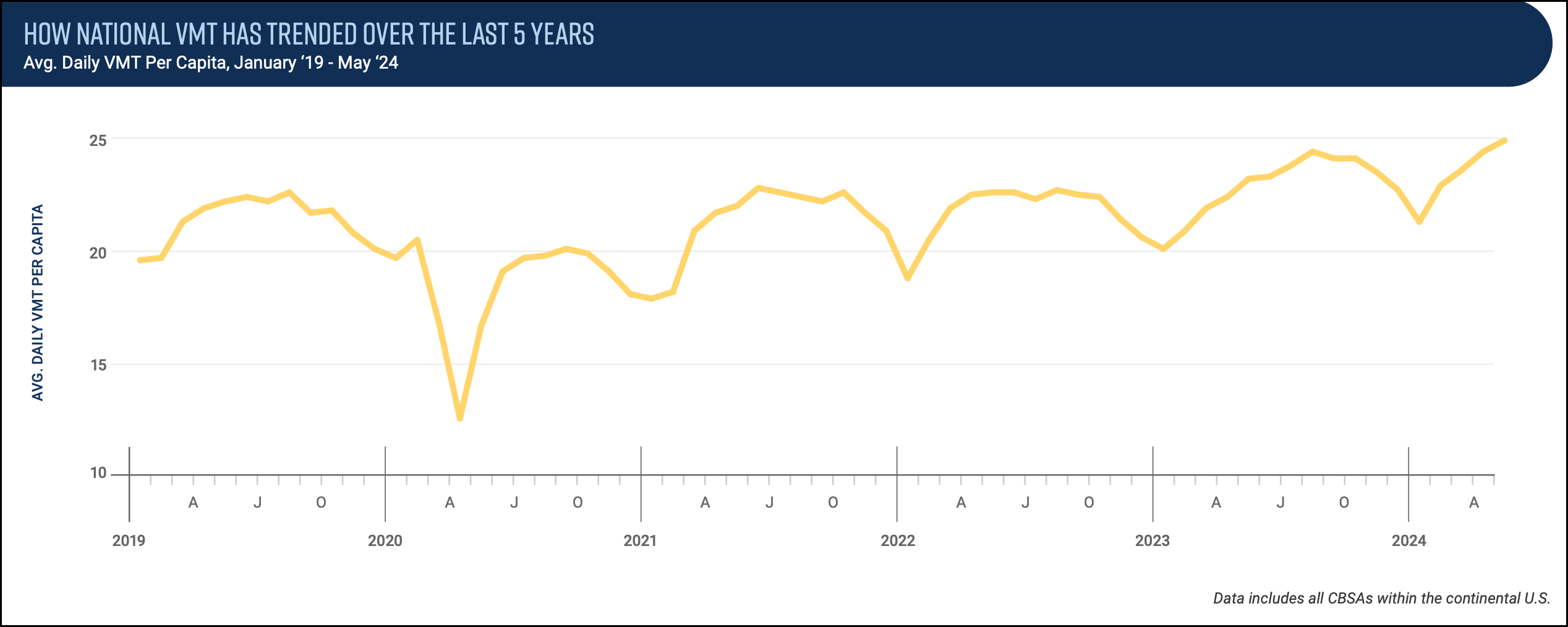 Overall, since January 2023, per capital VMTs nationwide are up 20 percent.
