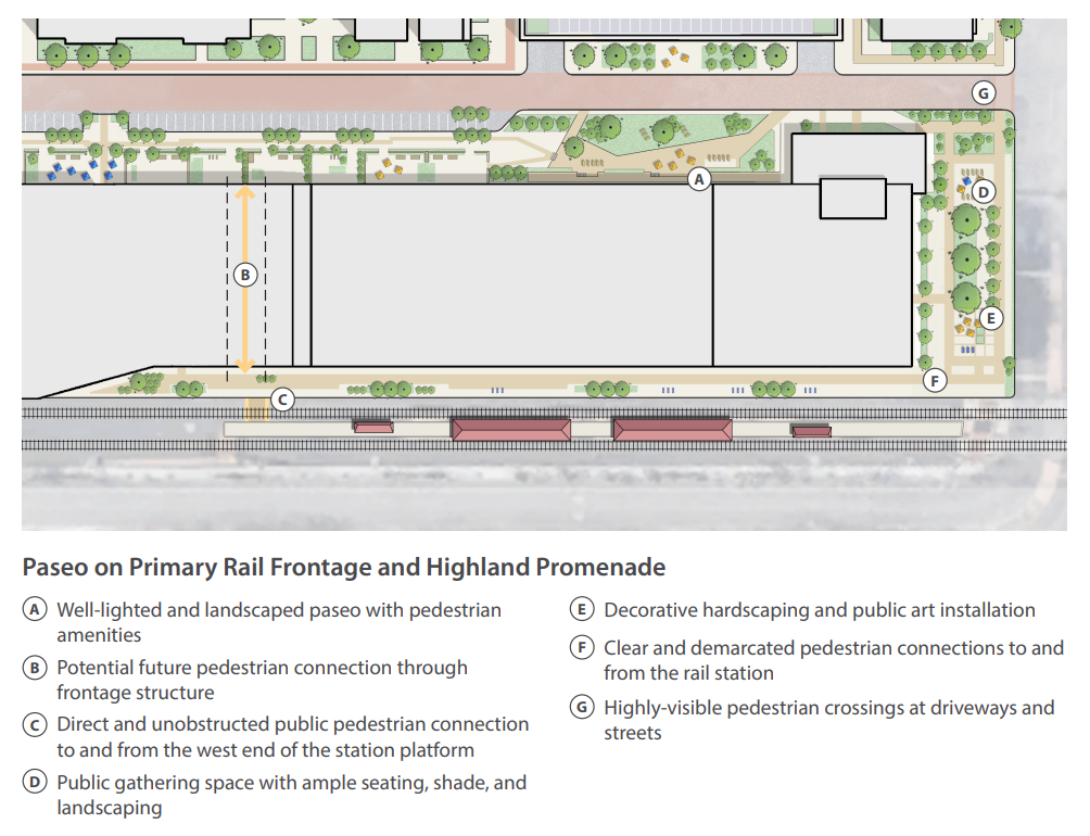 Alongside all that, there will be some nice pedestrian promenades and paseos connecting these residents to the Metro A Line, just a block away.