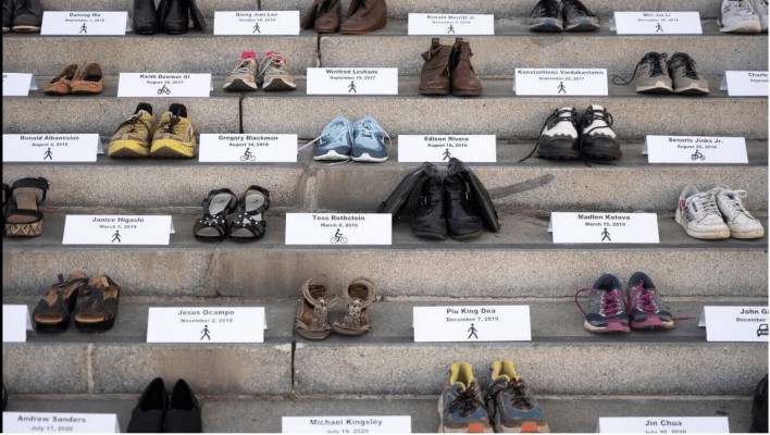 Los Angeles calls on everyone to join Streets Are For Everyone, So Cal Families for Safe Streets, LA Walks, Bike LA and SAFE Families to honor the 746 lives lost to traffic and the thousands affected by injuries in LA County in 2023. Meet at the upper section of Gloria Molina Grand Park, 145 N Broadway, on Sunday. Pop-up memorial installations will be set up beginning at 9:30 a.m. and the event will officially open at 11 a.m.