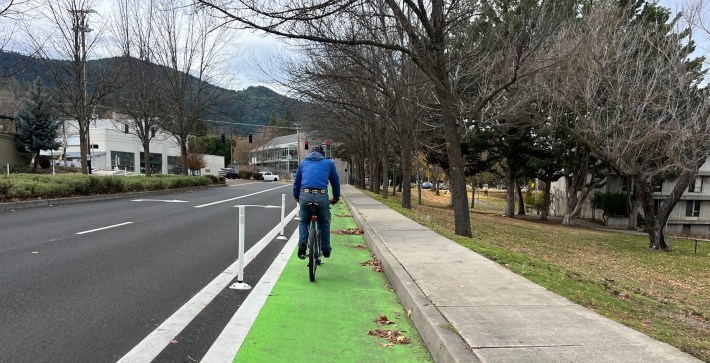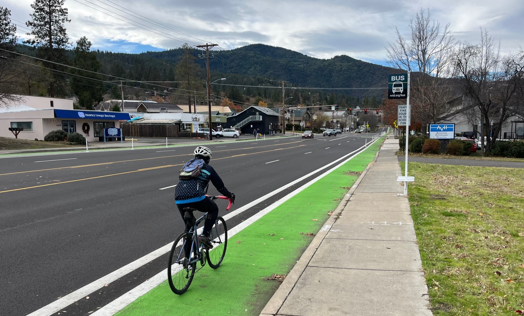 Southern Oregon doesn’t have the concentration of bikeways and bicyclists found in bigger cities further north: Portland, Salem, Eugene. But cities in southern Oregon do have bicyclists and bikeways. Last year, Streetsblog profiled a promising new bikeway in Medford. This year, it’s four bikeways in the nearby cities of Talent and Ashland.