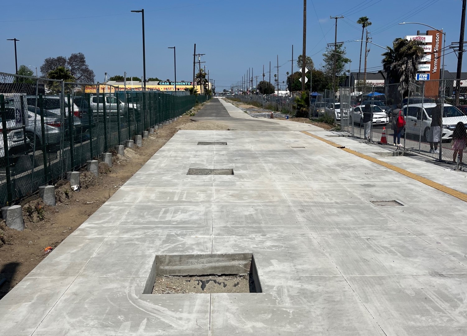 Metro is nearing completion of its $143 million 5.5-mile long Rail-to-Rail Active Transportation Corridor Project (Segment A). The linear park with bike/walk path will extend 5.5 miles along a former rail right-of-way (next to and near Slauson Avenue), connecting from the K Line Fairview Heights Station to the A Line Slauson Station.