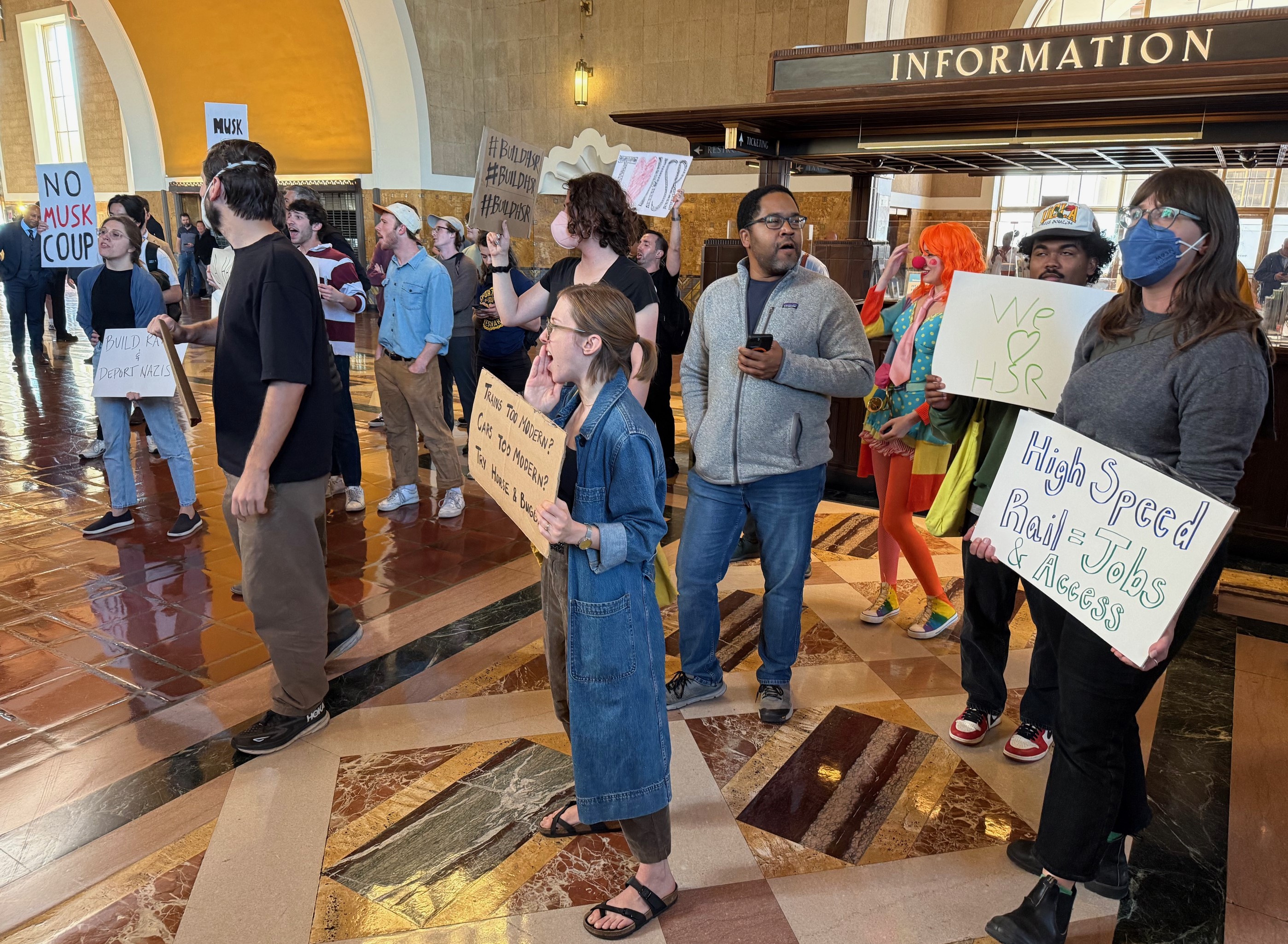 Protestors Disrupt USDOT Secretary’s Attack on California High-Speed Rail
