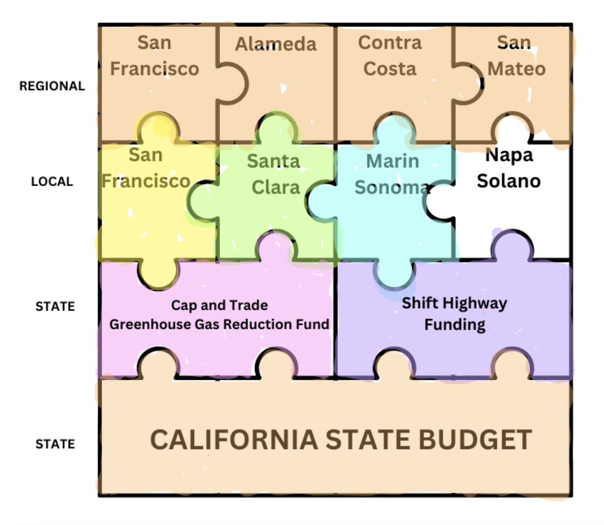 In the Bay Area, policymakers are working on a combination of regional and local funding measures that can snap together to support a well-coordinated transit system. It is critical for the pieces to be designed to work together so the outcome meets voter demand for a seamless system with better service and coordination.