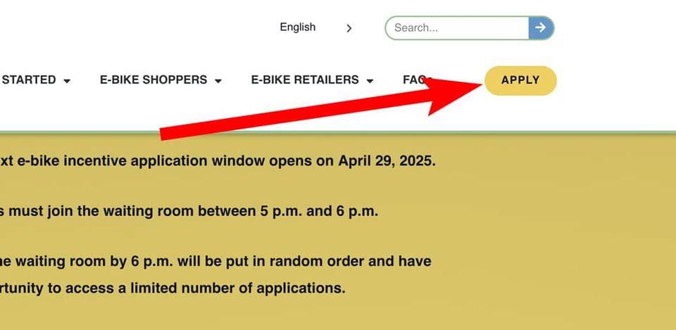 To join the waiting room, go to ebikeincentives.org and select the ‘APPLY’ button in the upper right-hand corner of the page.