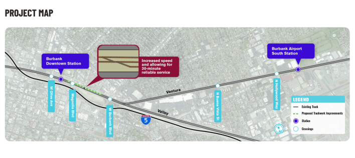 SCORE was a series of smaller projects that would have increased the capacity and speed of Metrolink services, not a mega-rail project such as a new rail line. It included double tracking, siding and signaling work, and station improvements. In eight years, Metrolink has completed one item on the list: the Burbank Junction Project, a lengthening of a siding to allow trains to pass each other at higher speeds.