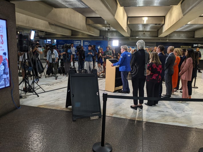 Advocates and those at Tuesday morning’s event were pleased to see BART taking this first step. “It’s great to have the bank card payment available starting on BART, which serves a lot of the region’s travel,” wrote Seamless Bay Area’s Adina Levin. Mayor Lurie, another of the speakers at the event, said a “clean, safe, and efficient transit system is essential” to downtown’s recovery.