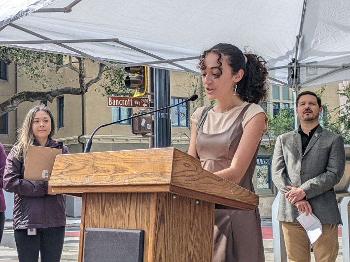 Note: UC Berkeley’s Ruben Lizardo also spoke at the event to praise the city and the speed at which these installations were completed. He said it was as if Captain Kirk said “make it so” and Berkeley just did it. Streetsblog pointed out that “make it so” was Captain Picard’s tagline, not Kirk’s. Lizardo nevertheless insisted it was Kirk. Streetsblog will continue to pursue this important matter.
