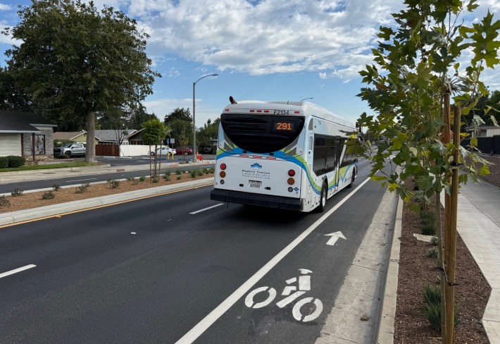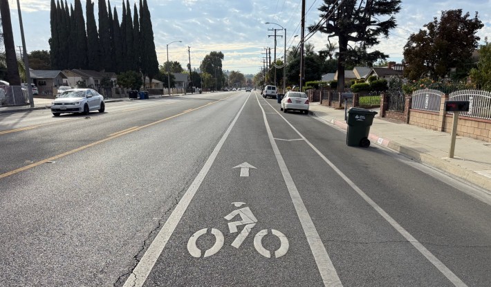 The La Verne Avenue facility appears to represent growing pains. Parking-protected bike lanes are still uncommon in L.A. County. Sometimes ambitious unfamiliar facilities encounter a backlash, especially when most residents drive and few bike.