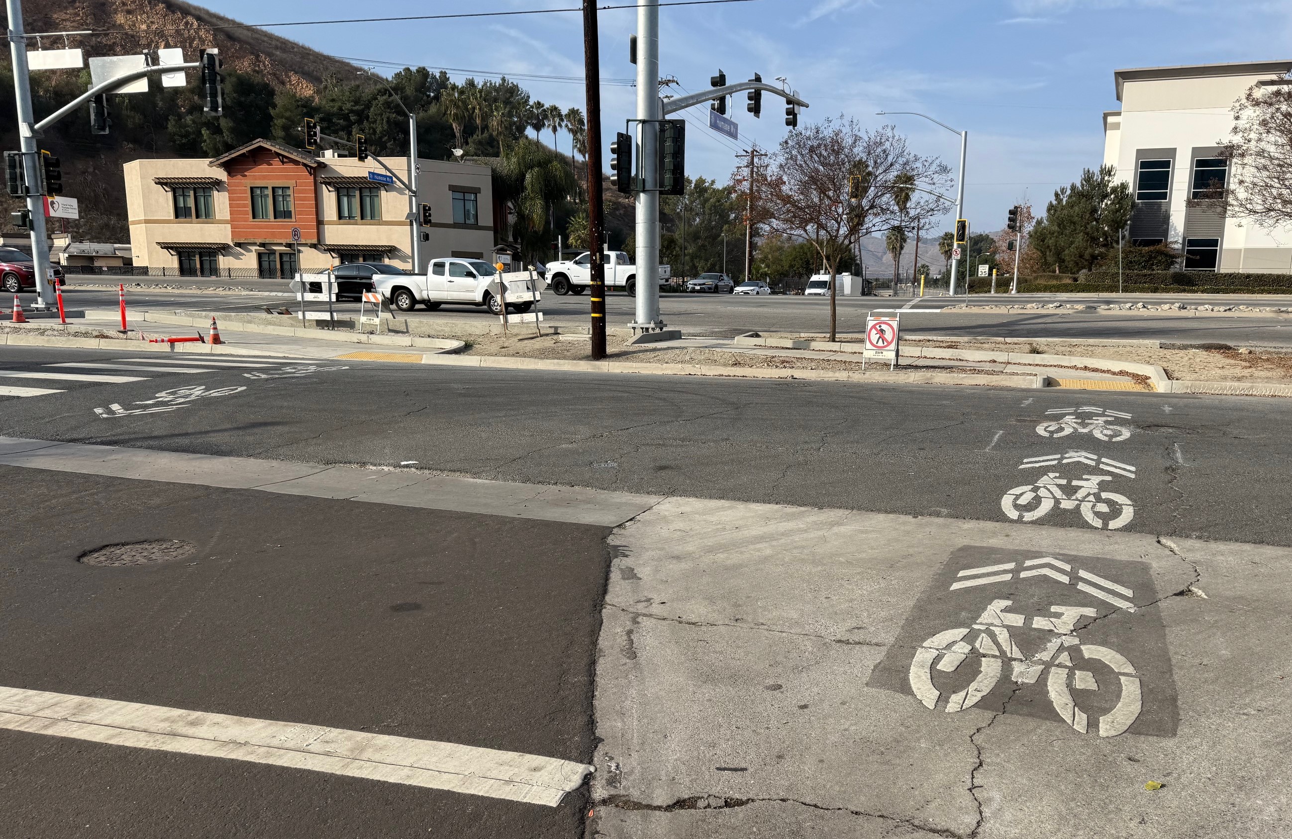 In mid-2024, Pomona installed parking-protected bike lanes on nearly a mile of La Verne Avenue between Garey Avenue and San Antonio Avenue.
