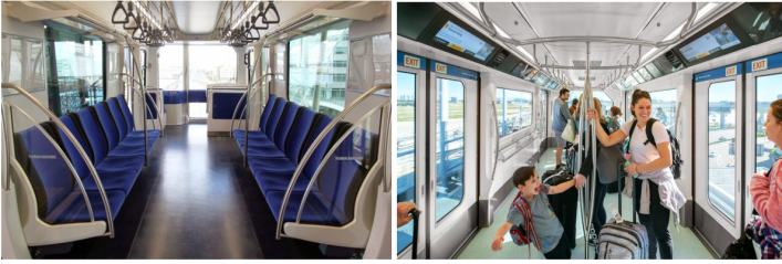 San Diego can order APMs with much more seating. Mitsubishi’s Crystal Mover APM comes in several variants. However, those used on urban metro lines have far more seating than those used at airports.