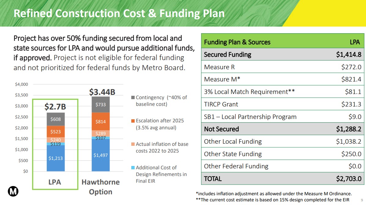 Metro expects the ROW alternative to cost $2.7 billion, compared to $3.4 billion for the Hawthorne Boulevard.