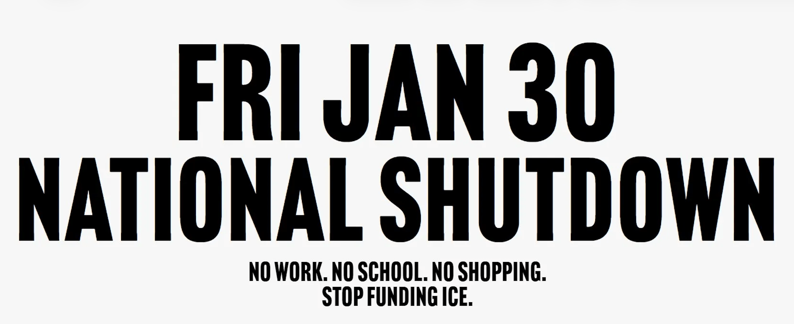 - Friday January 30: NO WORK. NO SCHOOL. NO SHOPPING. STOP FUNDING ICE. (National Shutdown)