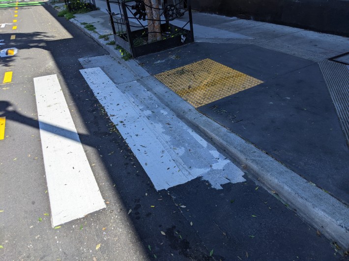 While these features are welcome, Streetsblog would be remiss if it didn’t point out that “prioritizing non-motorized modes of travel” isn’t an accurate description. It’s certainly giving more space to make it safer and more comfortable to bike and walk on this heavily trafficked street, but the majority of the space on the street is still for private automobiles and parking. Also, construction detours for cyclists are pretty nonexistent, so be careful navigating the area.